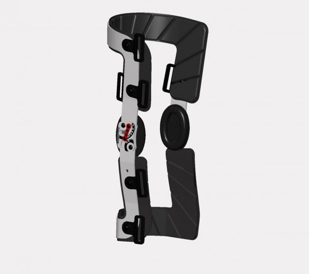 ATOM 2RA is the 4-points of leverage brace, made of high quality aluminium hot covered by powder dye. The brace is equipped with 2 anatomic hinges, which reflect physiological knee movement precisely and allow to range of motion adjustment in every 20 degree.