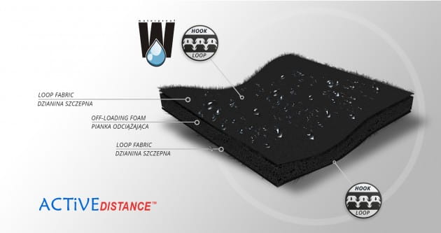 ActiveDistance™ is an technical off-loading lamination with 3-layered construction. It’s made of EVA foam double-sided laminated with non-elastic polyamide layer that is easy to attach. This self-gripping function of ActiveDistance™ provides wide range of adjustment and perfect fitting. What is important, ActiveDistance™ is non-elastic fabric so it stabilizes your body in a perfect way. Thanks to using the comfort foam, the device is really soft what influences on the comfort of using it. Waterproof material.