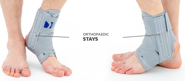 There are special pockets on the sides that are easy to attach, where you can put orthopedic stays. Depending on the required level of stabilization, you can mount 1 or 2 orthopedic stays on all sides. Because of this construction, our ankle brace is durable and it’s an excellent solution for protection in sport and other physical activity.