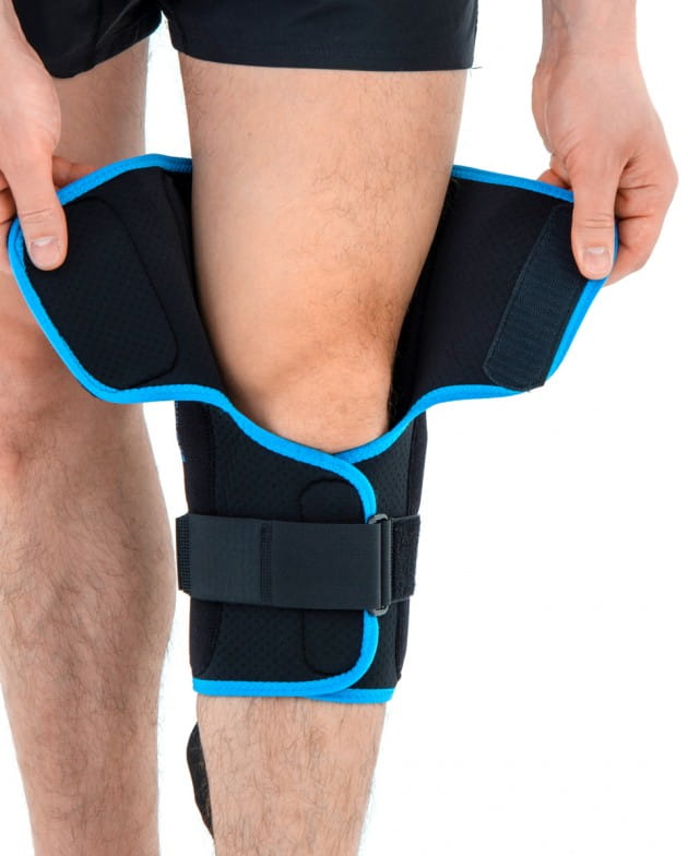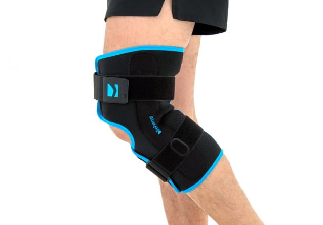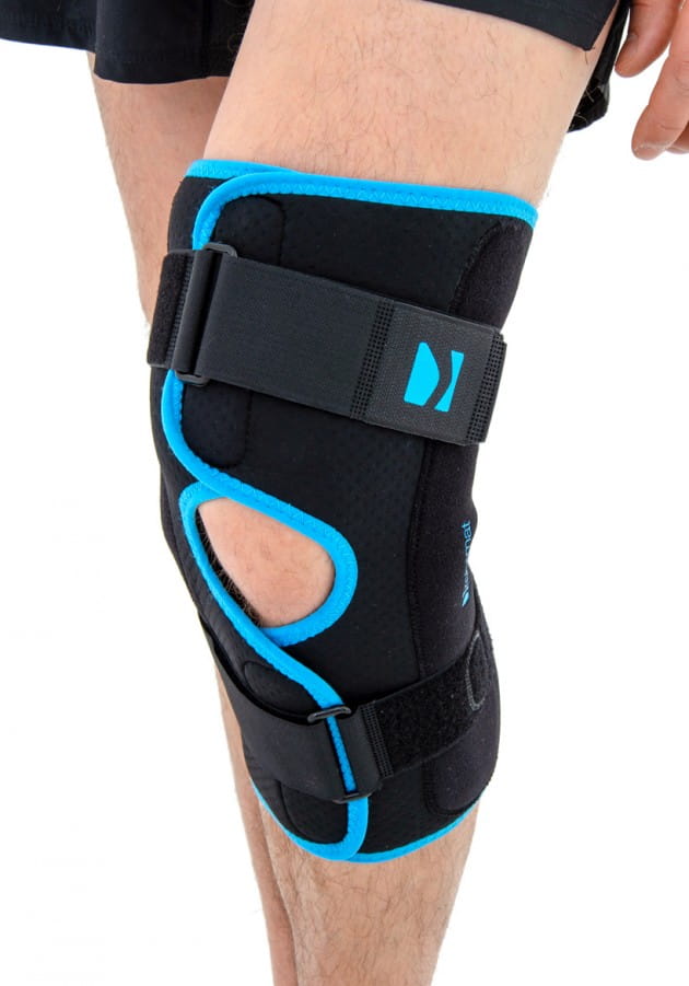The device is equipped with independent VELCRO straps and 1-axial aluminium sides splints without ROM adjustment but stabilizing the knee joint in the frontal plane.